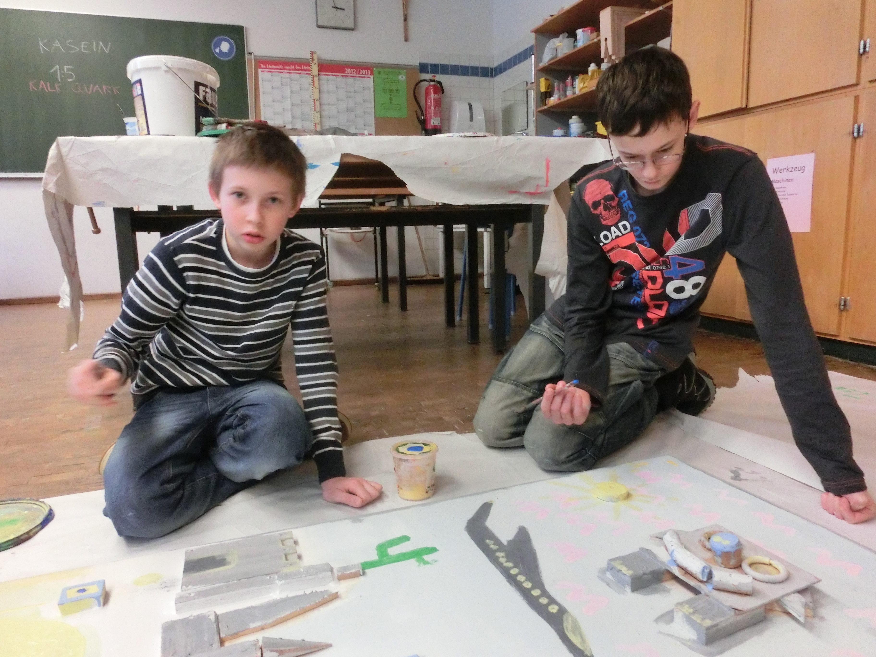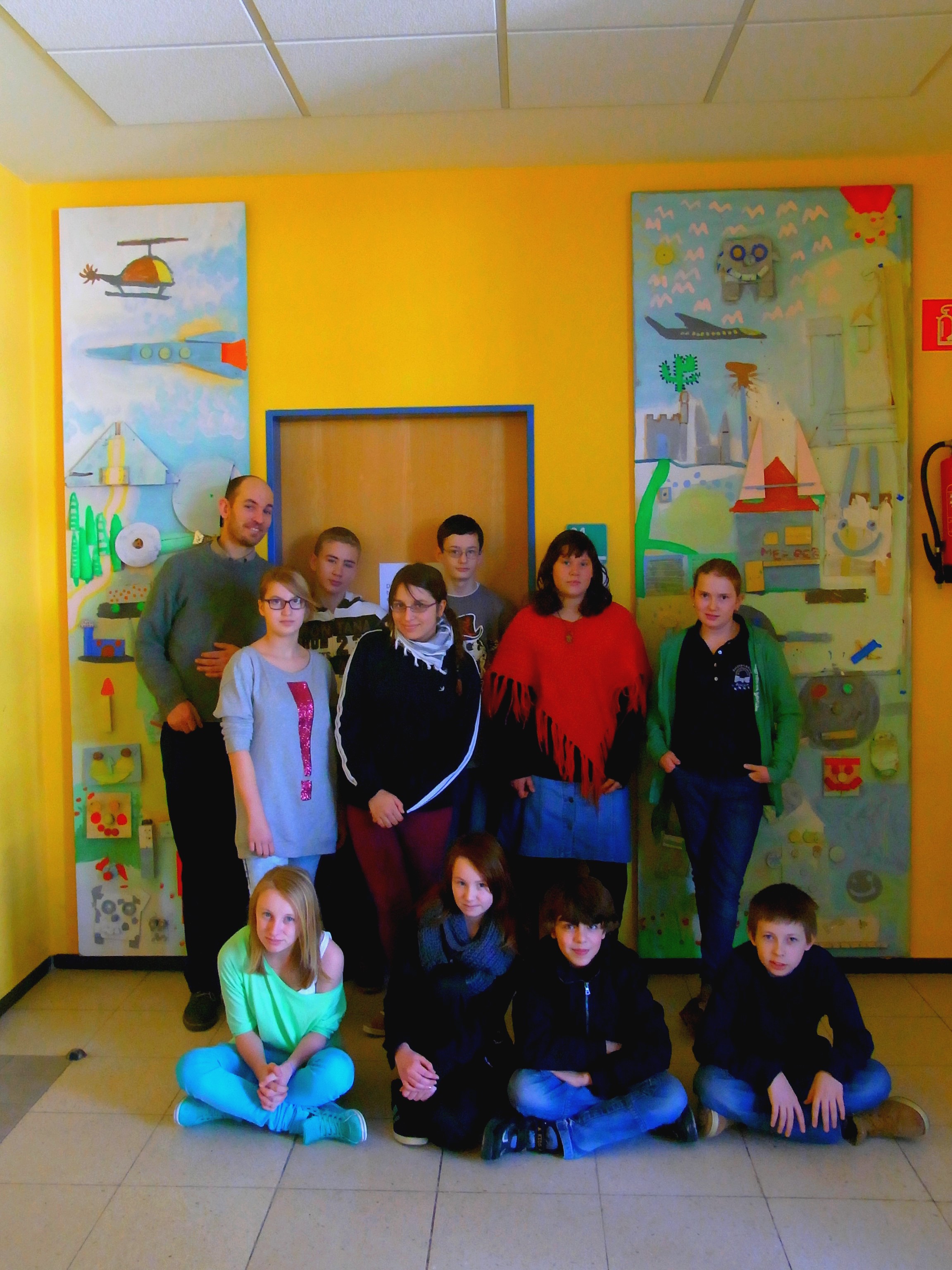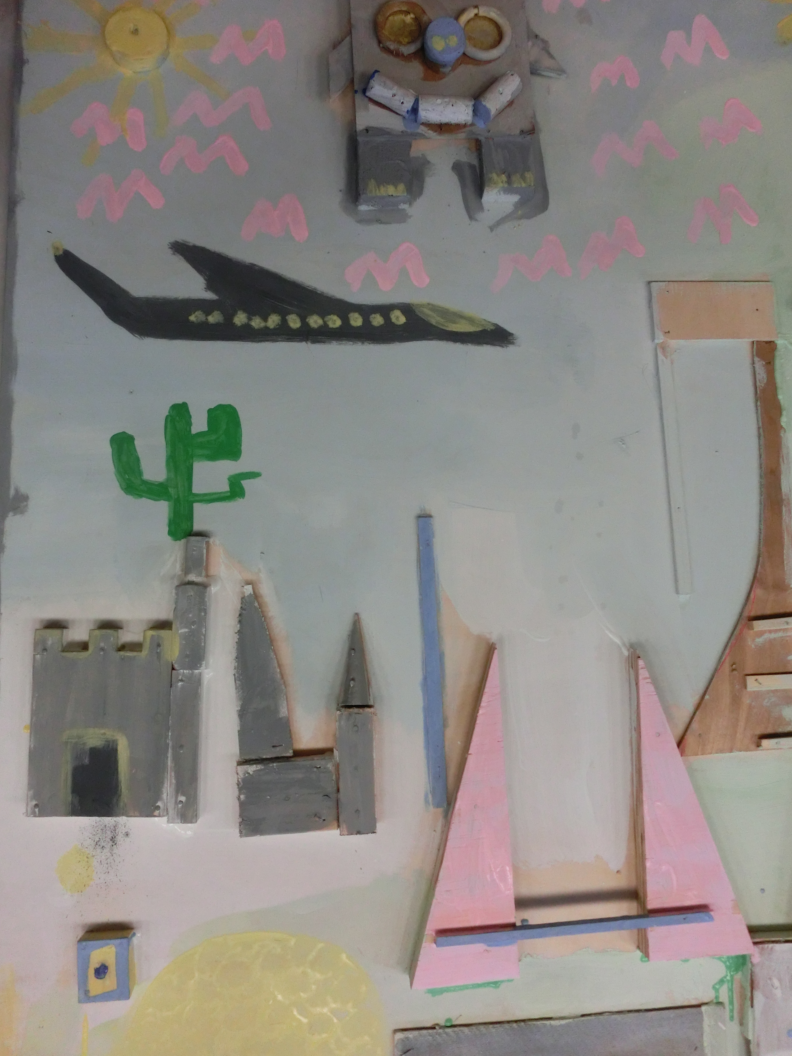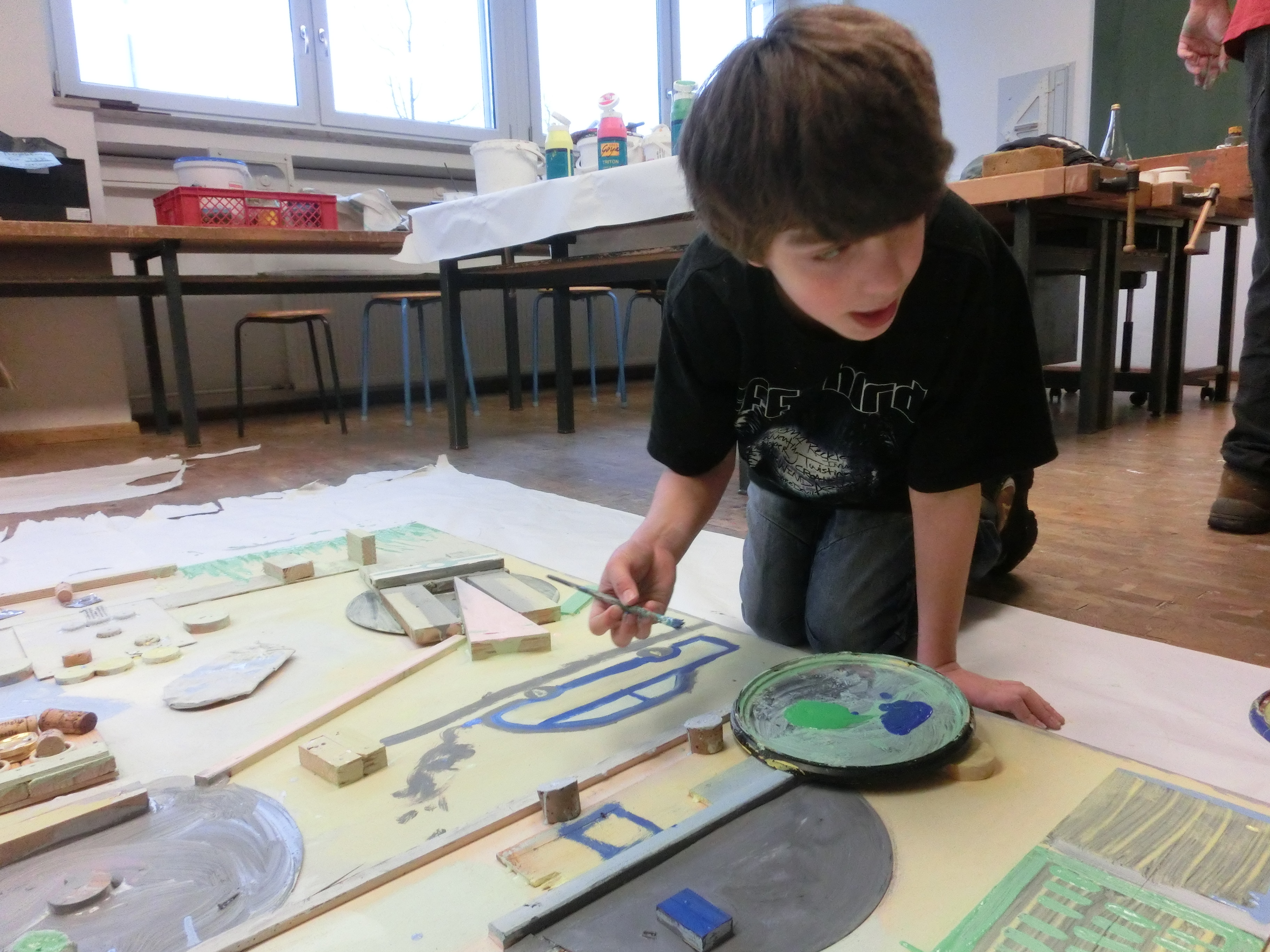 Ein neues Bild einer StadtPhantasiewerkstatt besucht Herzog-Ludwig-Mittelschule Bogen Im Rahmen der Nachmittagsbetreuung entstanden zwei große Wandbilder von Schülern aus den Ganztagesklassen 6. und 9. Ausgangspunkt und Thema war es, eine Stadt und ihre Bewohner als Relief darzustellen. Das von Klassenleiterin Eva Suttner initiierte Projekt wurde mit Hilfe der beiden Bogener Künstler Georg Fuchssteiner und Peter Herr betreut und sehr erfolgreich umgesetzt. Aus gewöhnlichem Recyclingmaterial wie Dosen, Holz, Metallresten, alten Schallplatten, Korken und Elektroschrott entstanden die unglaublichsten Dinge. Mit Spaß und Elan wurde die Stadt mitsamt Bewohnern, Häusern, Blumenbeeten, Geschäften, Garagen und darüber kreisenden Schallplattenhubschraubern gebaut. Ein Komet durfte aus aktuellem Anlass natürlich auch nicht fehlen. Anschließend wurde mit selbst hergestellten Farben weitergearbeitet und mit viel Phantasie das Gemeinschaftsbild fertiggestellt. Betrachtet man es im Detail, spielen sich kleine Geschichten darin ab. So findet man beispielsweise eine Burg in der ein riesiger Kaktus gepflanzt wurde. Warum das so ist, wissen nur die Jugendlichen selbst. Für die Ganztagesschüler war das über vier Wochen laufende Kunstprojekt eine wunderbare Erfahrung und der Schule bleibt zudem ein dauerhafter Wandschmuck überlassen.